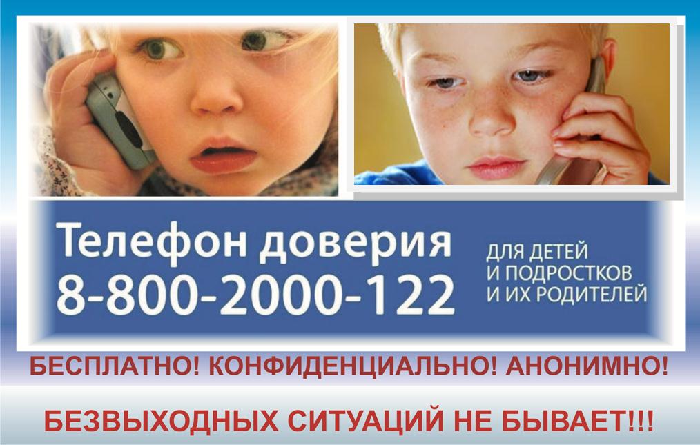 Телефон доверия для детей, подростков и их родителей.