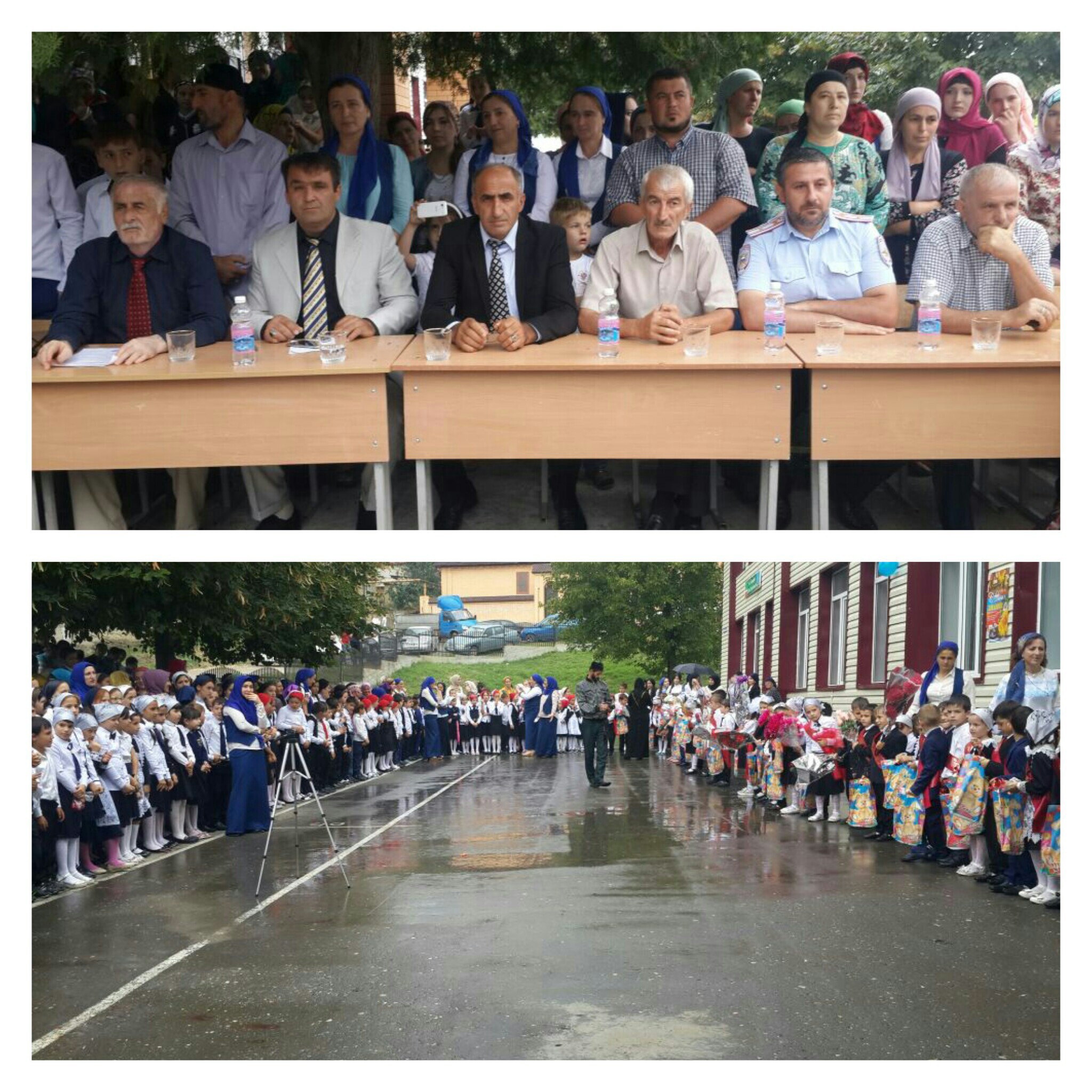На празднике прозвучали гимны РФ и ЧР, школьные песни, первоклашки читали стихи.