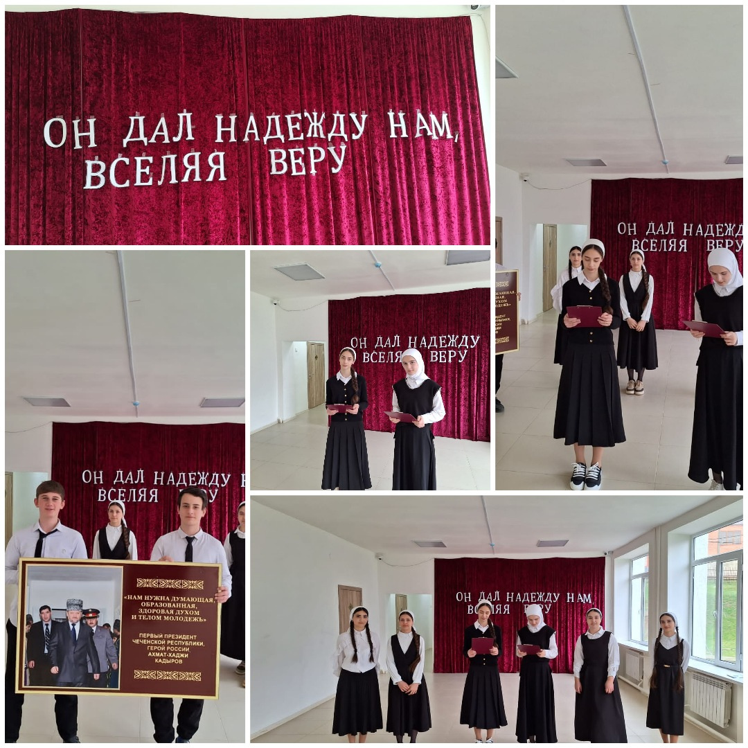Заместитель директора по ВР Сайдуллаева З.Р. провела общешкольное мероприятие "Он дал надежду нам, вселяя веру", посвященная Первому президенту ЧР, Герою Российской Федерации А-Х.А. Кадырову.
