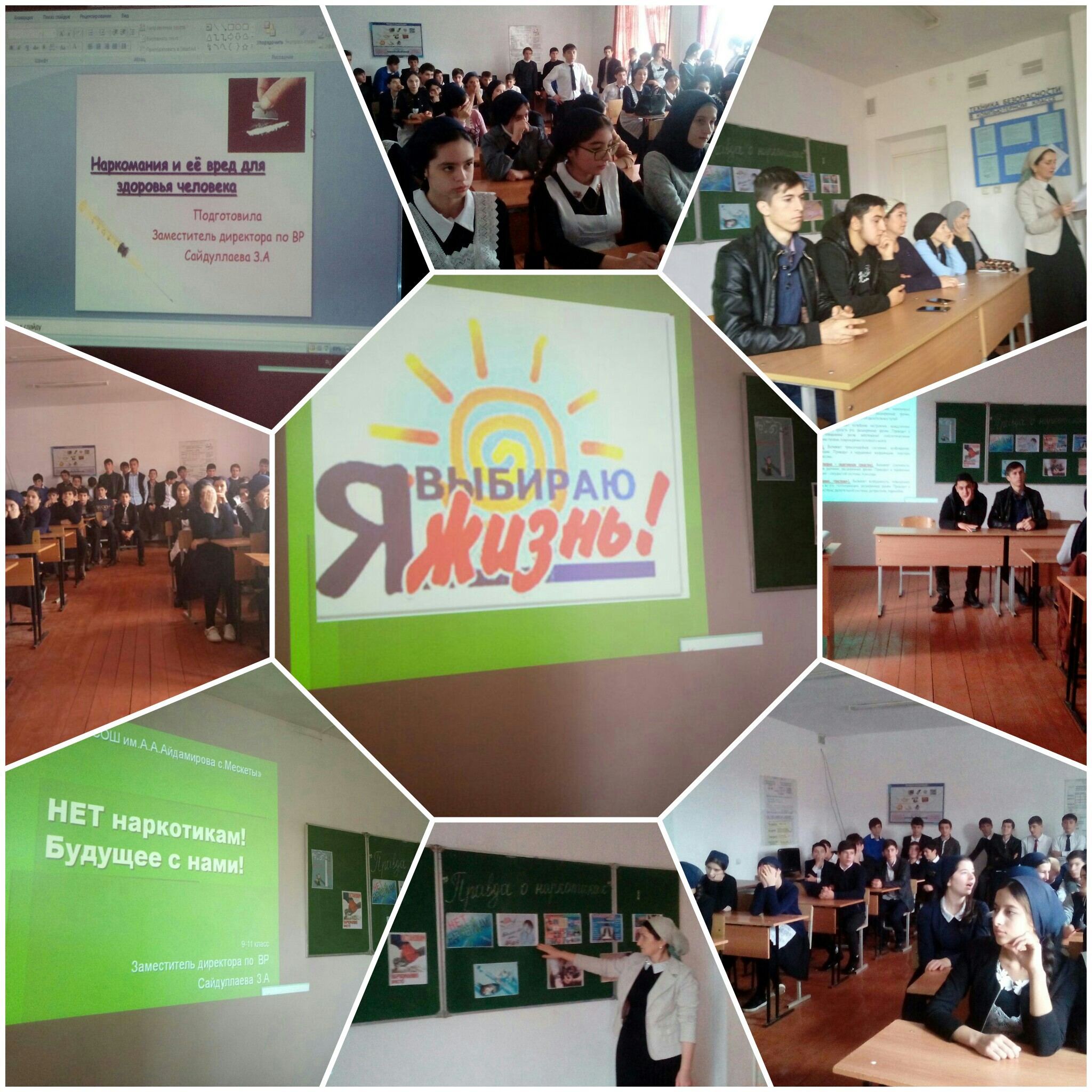 Сайдуллаева З.А. провела лекцию в 8-11 классах, на тему "Правда о наркотиках. Своим выступлением познакомила учащихся с последствиями употребления наркотиков. Хотела выработать у школьников негативное отношение к первой пробе любого наркотического средства.