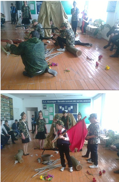 Под таким названием в школе 8 мая прошел конкурс инсценирования песни. Победителем конкурса стала инсценировка песни "Последний бой" М.Ножкина, благодаря отличного воссоздания картины промежутка реального боя, сыгранного следующими учащимися: Айдамирова И., Висалиева Т., Хамудова И., Абдулмежидов З., Идрисов А., Магомадов Р., Умархаджиев Х., Тимирбулатов Р., Кагарманов Х., Тушигова М., Тушигов А. под руководством Тушигова Х.М., Эпендиева З.Х. Эти же учащиеся на республиканском конкурсе "Красная гвоздика" 7 мая заняли 3-место. все учащиеся награждены грамотами дирекции школы за активное участие в общественной жизни школы.