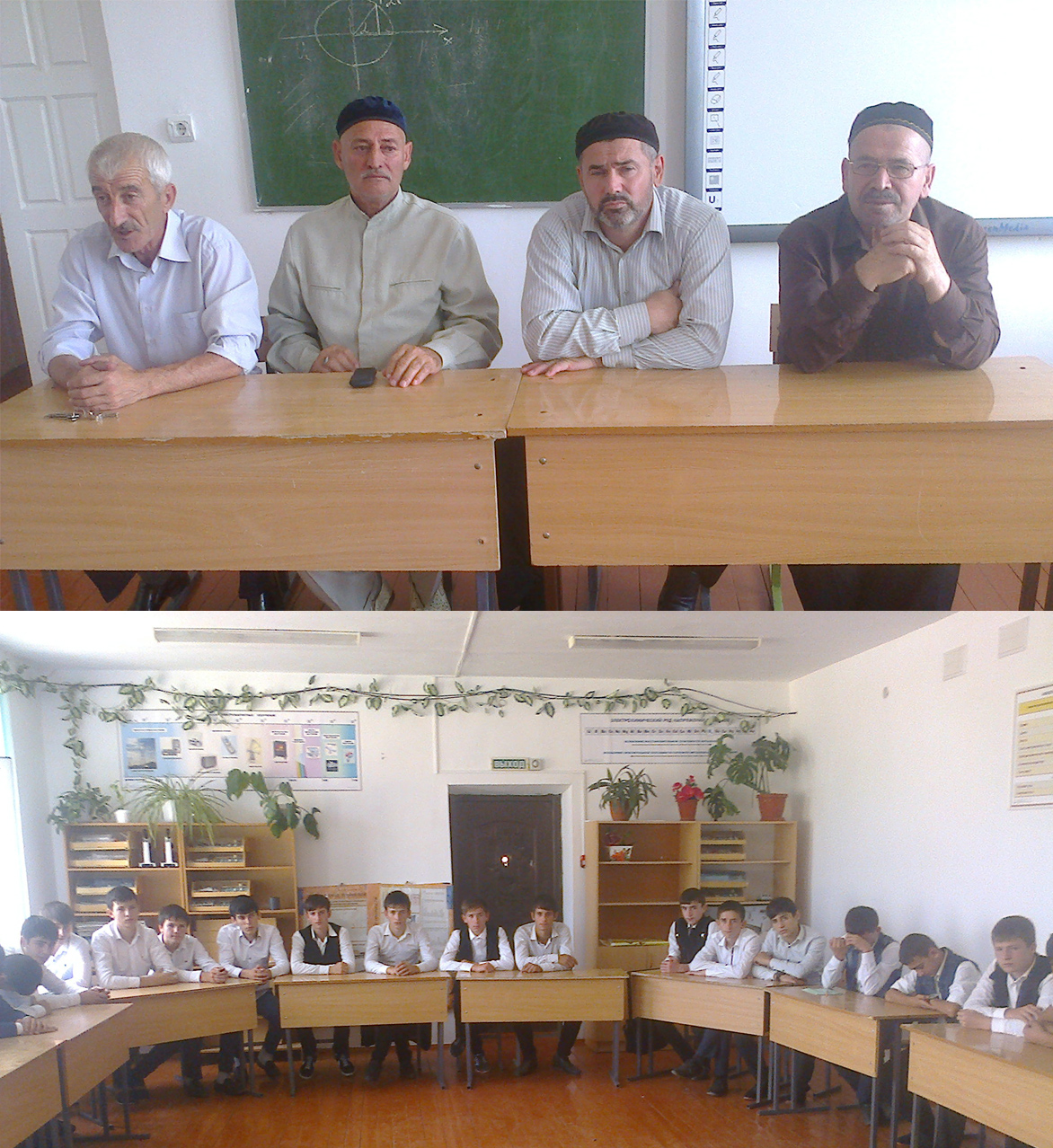 В круглом столе участвовали и выступили приглашенные: имам мечети Цациев Магомед, заместитель директора по ДНВ, председатель совета старейшин района Зайпуллаев Умарсолта.